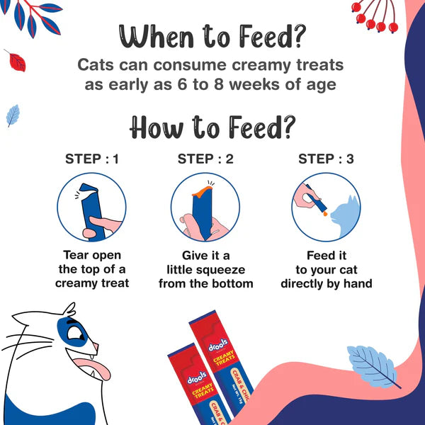 For added benefits, these treats are easy to digest, making them suitable for all cat breeds. They are free from artificial flavors and preservatives, offering only the best for your furry friend. Whether used as a reward or a snack, Drools Creamy Treats for Cats ensure happiness in every bite.